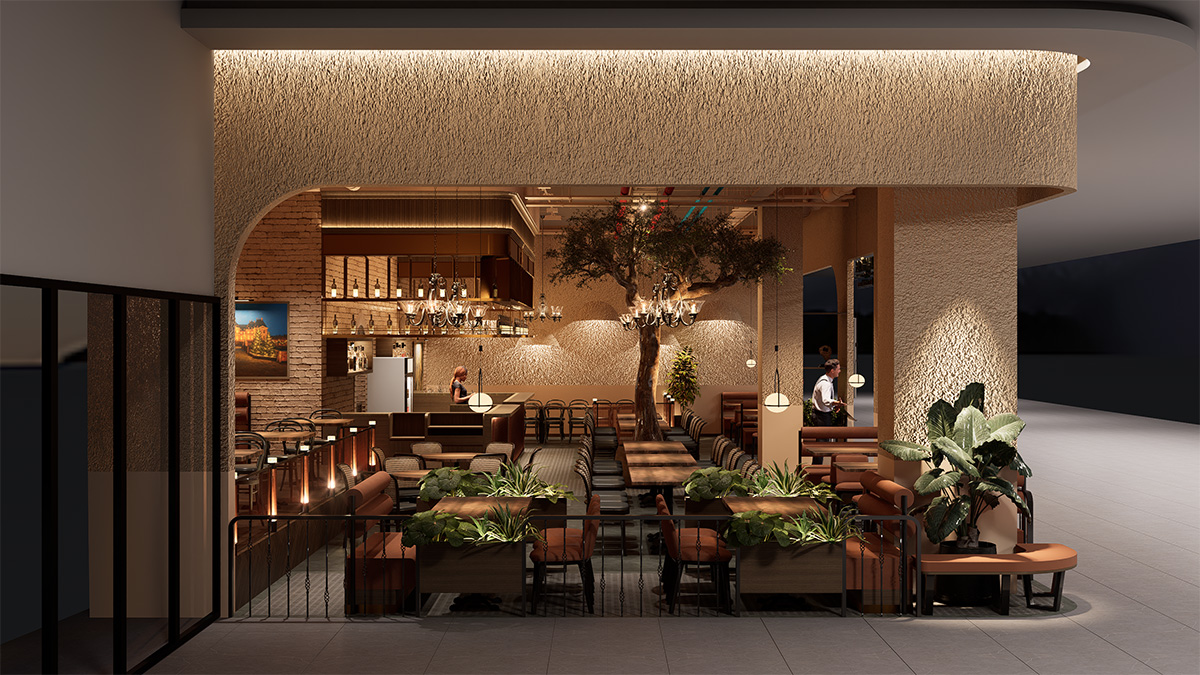 Khi bắt tay vào Steakhouse The Fan – Đà Nẵng, 91 Studio muốn tạo nên một không gian khiến thực khách cảm nhận được sự ấm áp ngay từ khoảnh khắc bước vào. Từng đường cong ở mặt tiền, từng viên gạch thô, từng ánh đèn vàng đều được lựa chọn với mong muốn mang đến cảm giác thân thuộc của một steakhouse chuẩn Âu nhưng vẫn phù hợp với hơi thở hiện đại của thành phố biển. Chúng tôi đặt cây lớn ở trung tâm như một “điểm chạm cảm xúc”, để không gian không chỉ đẹp mà còn mềm mại và có chiều sâu. Khu vực bar được thiết kế như nơi giữ nhịp cho toàn bộ nhà hàng, ấm áp, sống động và luôn đầy năng lượng. Và sau tất cả, điều 91 Studio hướng đến vẫn là tạo nên một không gian khiến khách muốn ngồi lâu hơn một chút, trò chuyện thêm một chút để bữa ăn trở thành kỷ niệm trọn vẹn.
