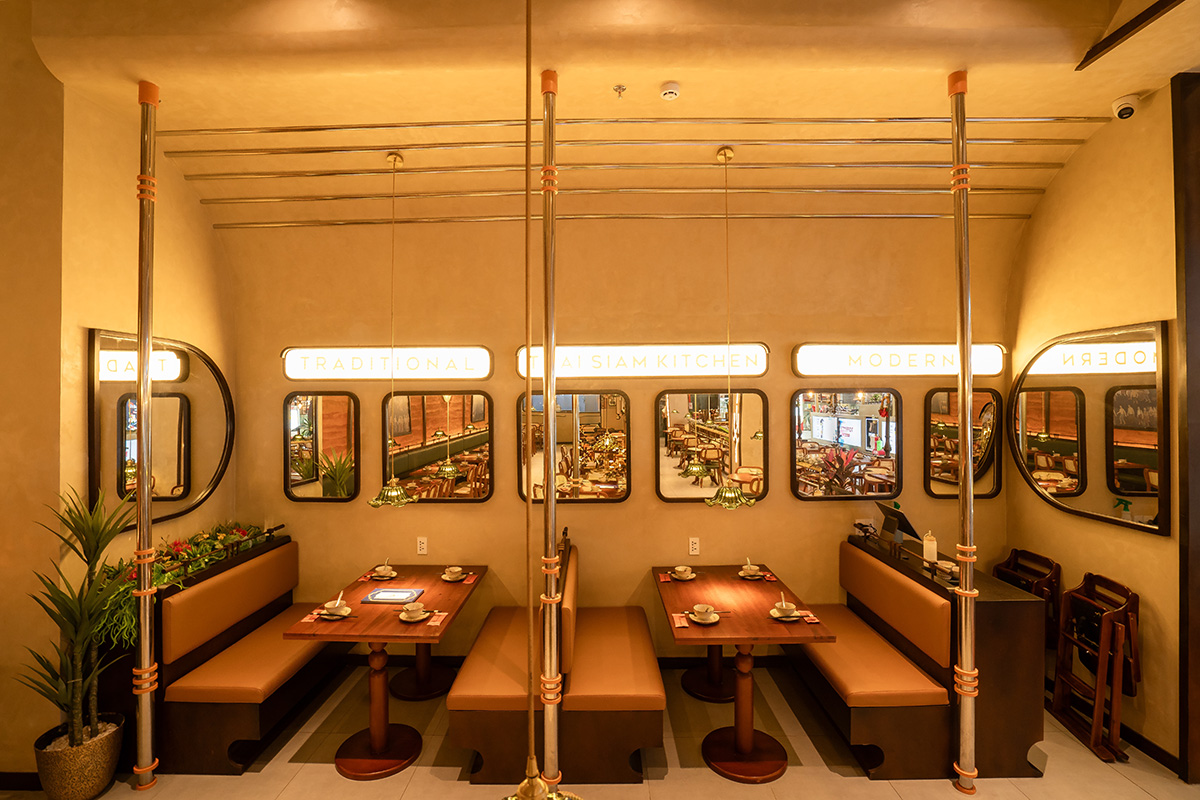 Thai Siam Kitchen là một hành trình chứa đựng tình yêu sâu sắc dành cho văn hóa Thái Lan, 91 Studio lấy cảm hứng từ những toa tàu lửa cổ để tạo nên một hành trình ẩm thực đầy thú vị. Mỗi chi tiết trong thiết kế đều được hình thành bằng cảm xúc và sự tận tâm, với mong muốn mang đến cho thực khách trải nghiệm chân thật về những con phố và khu chợ sôi động của Thái Lan. Tất cả các yếu tố được 91 Studio kết nối hài hòa trong một thiết kế “nguyên bản và thuần chất”, giúp mỗi vị khách khi ghé đến có thể cảm nhận trọn vẹn tinh thần Thái, qua cả ẩm thực lẫn không gian.