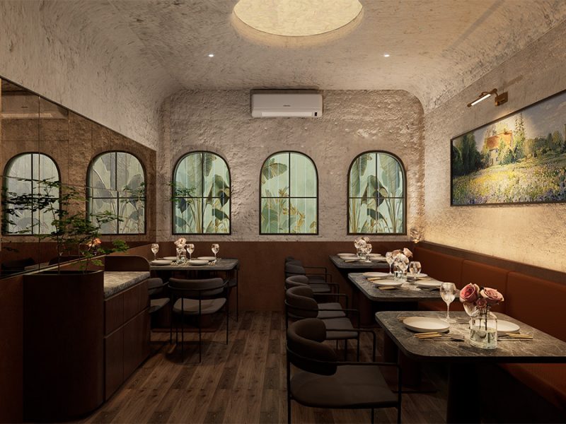 Throughout the iSushi projects in Ho Chi Minh City, 91 Studio delivers designs that maintain consistency while ensuring each location has its own distinctive character. At iSushi Aeon Bình Tân, the highlight lies in the decorative wall panels with flowing patterns, evoking images of Japanese nature—mountains, rivers, and ocean waves. Paired with warm golden lighting, they create depth and a soothing atmosphere for diners. The space is arranged with a flexible balance between group seating and a long bar counter, ensuring both privacy and opportunities for connection.