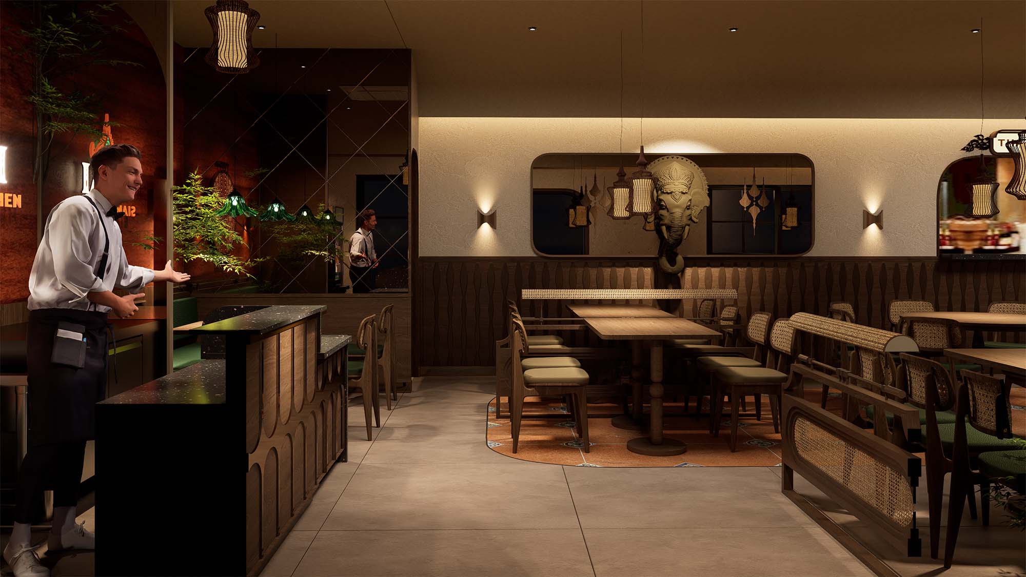 Inspired by the iconic silhouettes of Thai temples, these elements are subtly integrated into the design, creating an ambiance rich in the spirit of the “Land of Smiles.”
